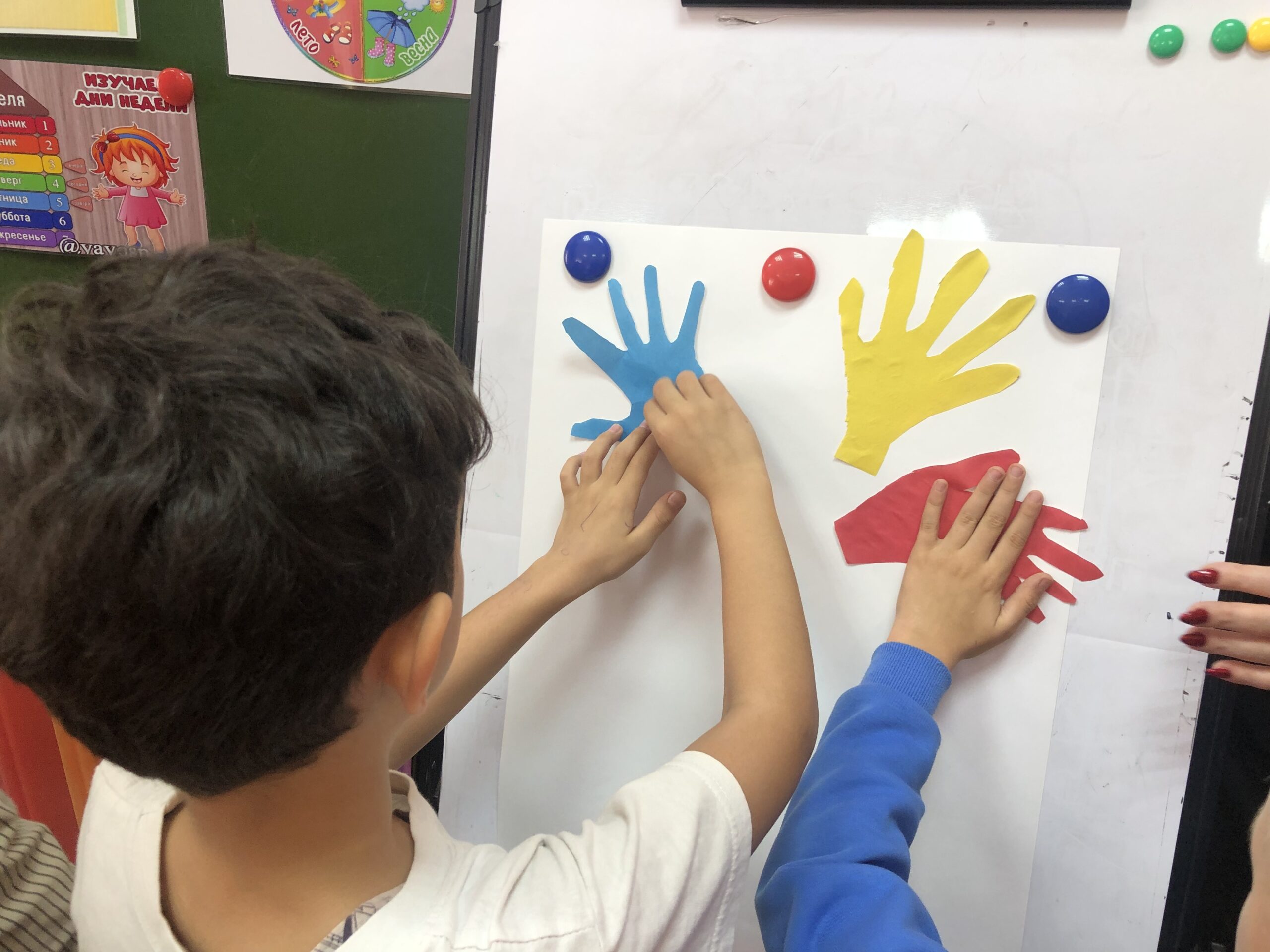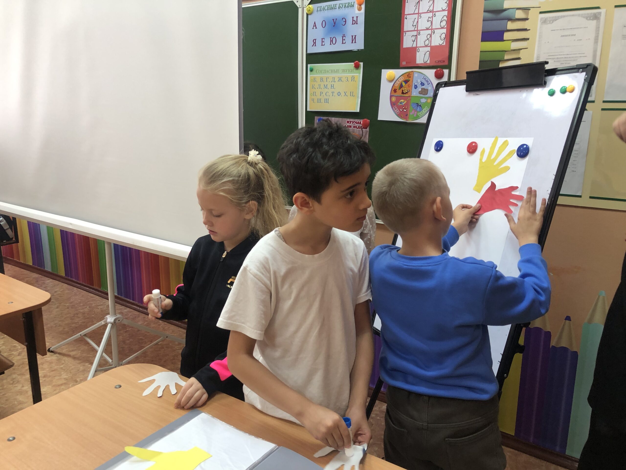 А завершить встречу решили созданием большого панно — солнышка, сделанного из детских ладошек. Оно символизирует стремление всех участников группы протянуть руку помощи.