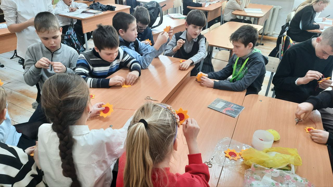В преддверии Масленицы педагог дополнительного образования Воронова Л. Н. провела для ребят увлекательный мастер‑класс «Солнышко».